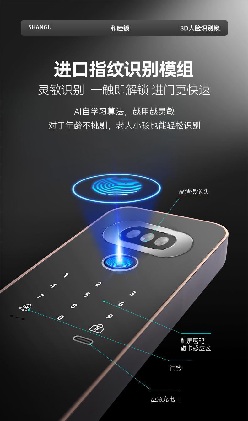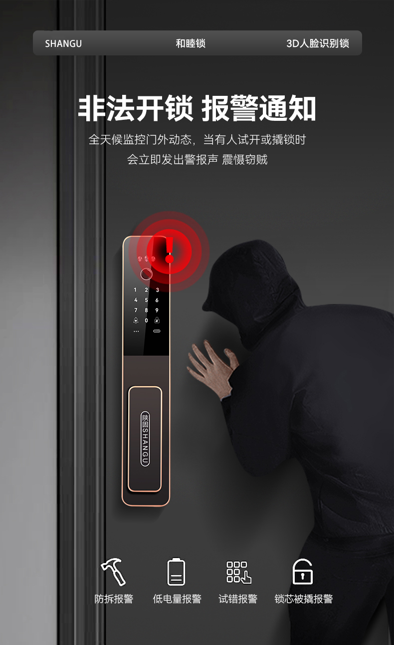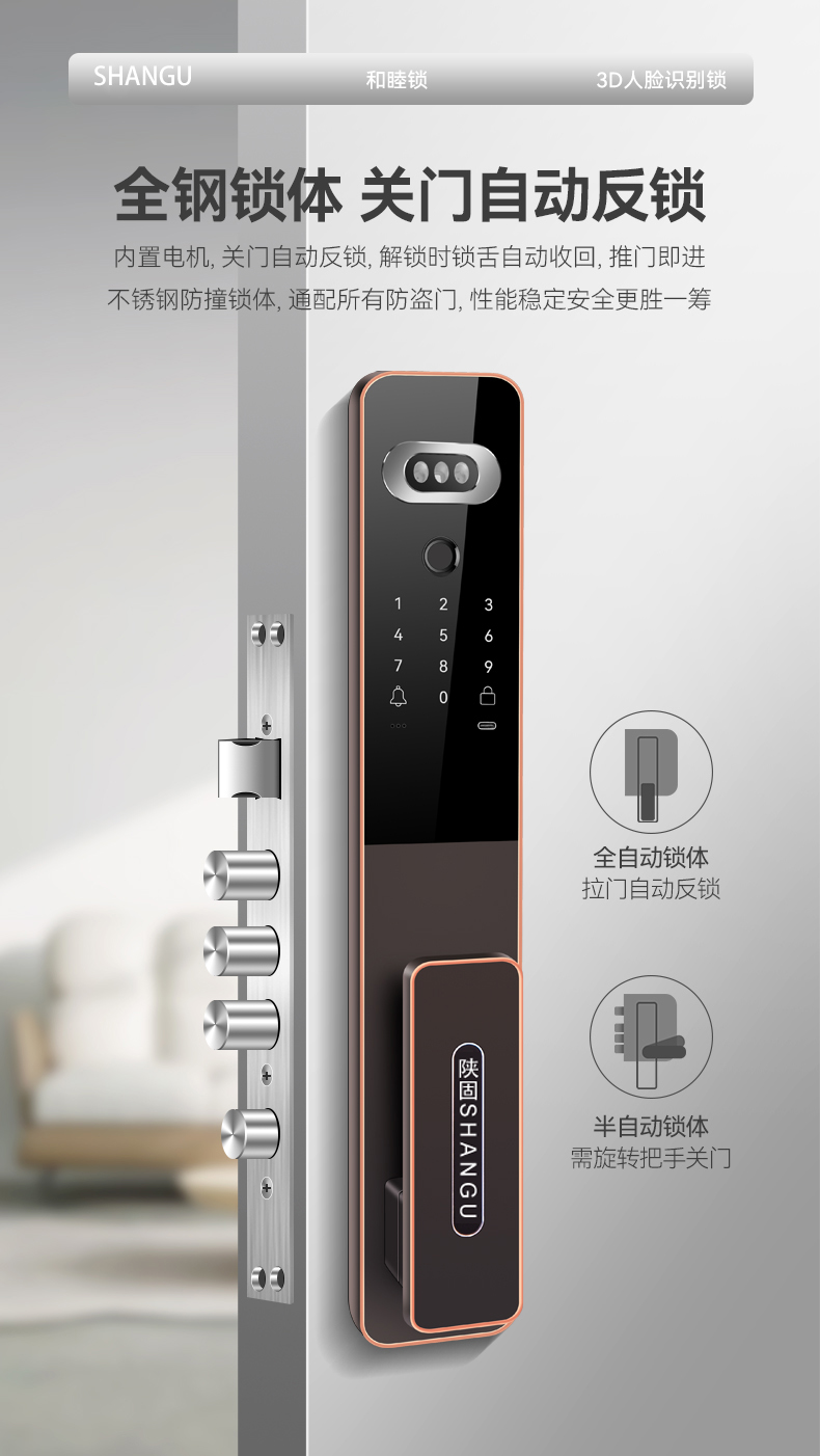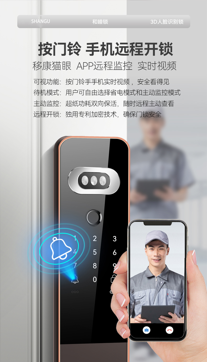 陜固和睦鎖3D人臉鎖指紋密碼遠程視頻