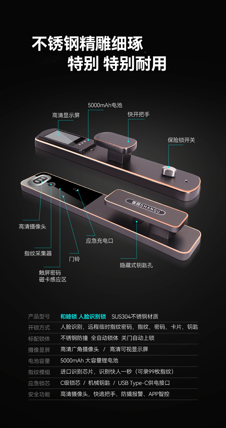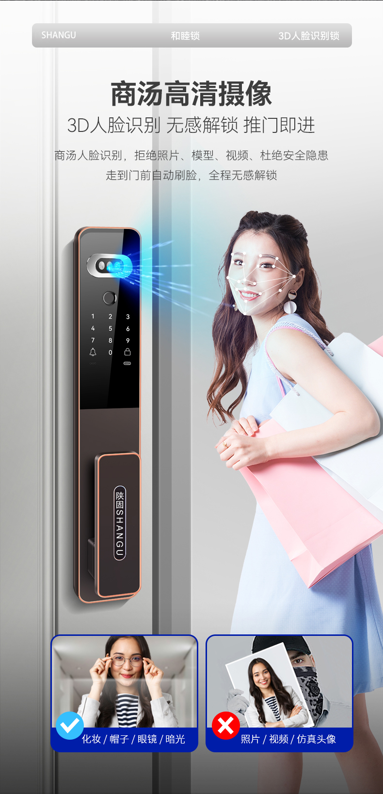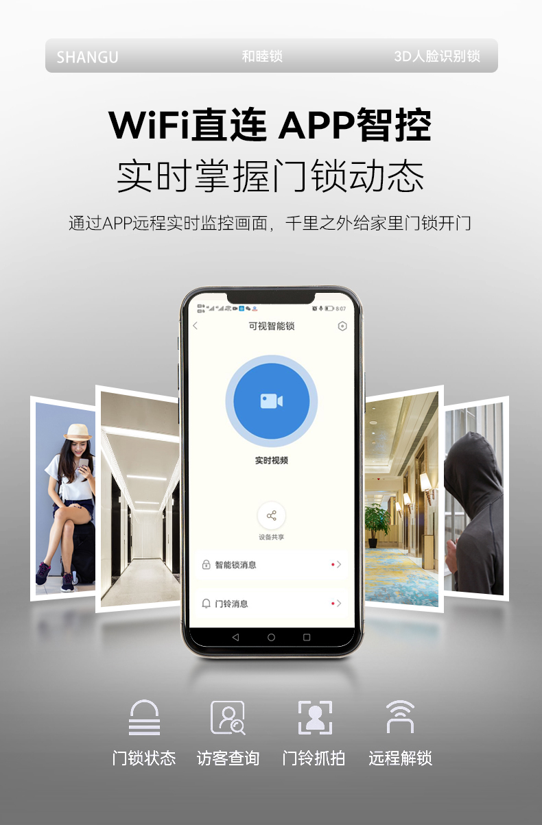 陜固和睦鎖3D人臉鎖指紋密碼遠程視頻